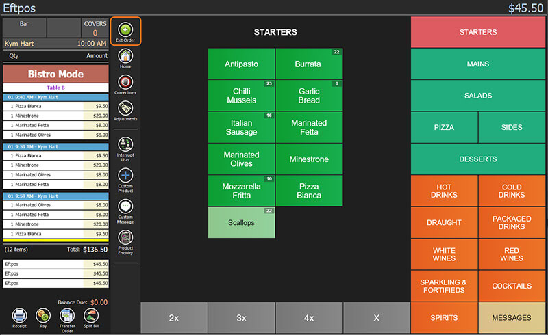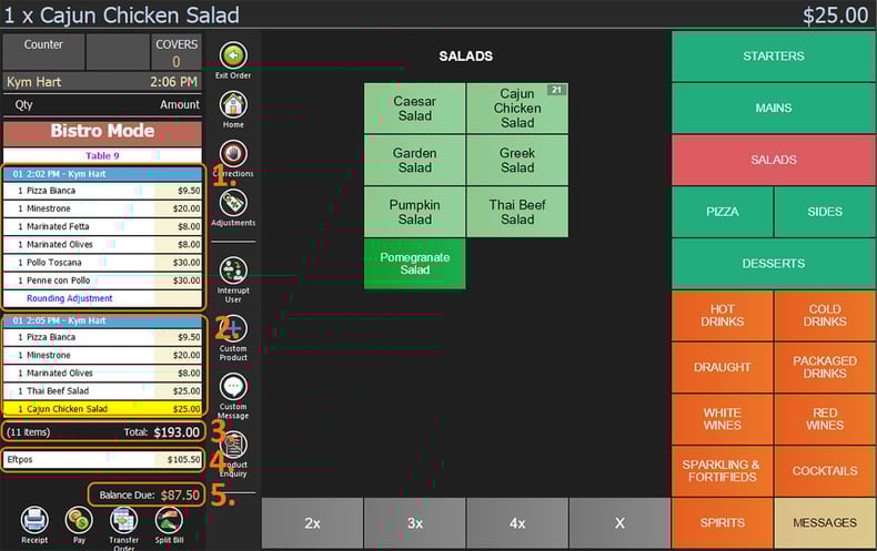 This means that some venues are set up to always take orders in Bistro Mode, for example, at a café providing counter service. Other venues use a button to turn Bistro Mode on and off, for example where food and drink orders are placed at the bar. In this guide we'll run through both situations.