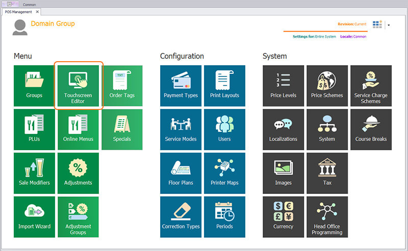 1. We first go to Touchscreen Editor from our POS Management screen.